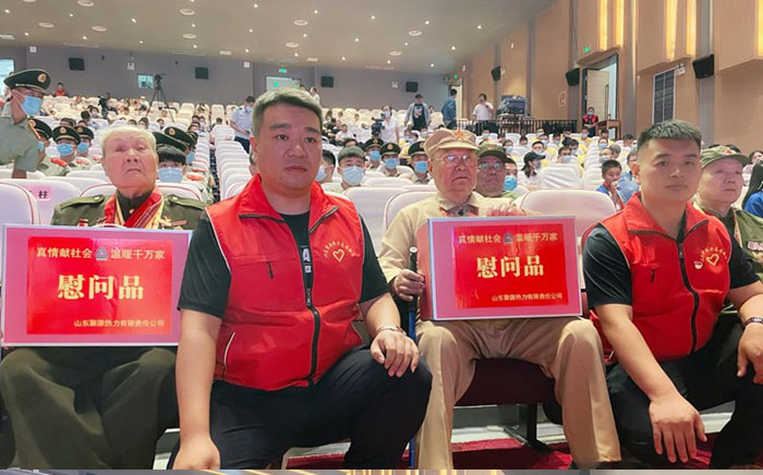 在“濟寧市慶祝八一建軍節(jié)文藝演出”現(xiàn)場,我們有幸見到了濟寧市抗日戰(zhàn)爭、抗美援朝、對越自衛(wèi)反擊的戰(zhàn)老兵代表,他們?yōu)榱吮Pl(wèi)祖國,離開家園,用滿腔的熱血和堅決斗志征戰(zhàn)戰(zhàn)場,換來了我們今天的幸福生活。借此機會山東聚源熱力公司組織退伍軍人送去節(jié)日的問候和慰問品。在與革命前輩們的交談中,我們感受的到戰(zhàn)火紛飛的革命歲月深深地刻進(jìn)他們的腦海里,愛國為民的革命初心在他們心中珍藏至今。為了抗擊敵人、保家衛(wèi)國,他們曾幾度將個人生死置之度外,沖鋒在前、毫不退縮。老人們又對我們年輕一輩寄予厚望,他們講道,現(xiàn)如今祖國繁榮富強,人民安居樂業(yè),希望你們年輕一輩,接過時代的接力棒,銘記永不磨滅的愛國精神,在新時代建立屬于你們的功勛。